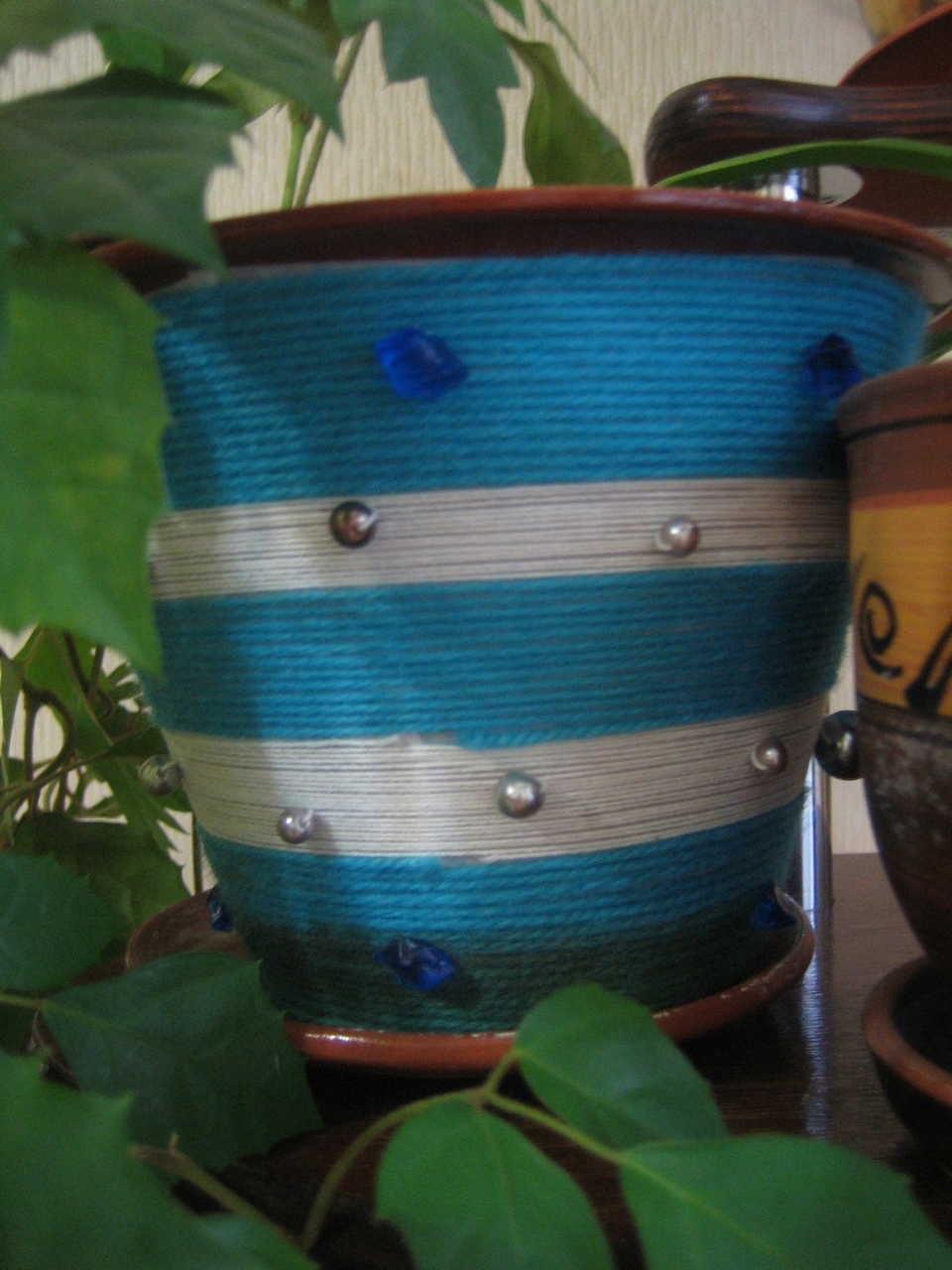 Цитата: Красиво! Эти вазочки - просто бисер на нитке и обмотаны, да? Или приклеены ещё дополнительно? Да, бисер нанизывала на леску, потом обматывала бутылочку, паралельно сажала на клей (прозрачный момент), вот и все. А голубой горшок, нитки вообще посажены на двухсторонний скотч Цитата: Это же не стекло, а, как я поняла, осколки СД-диков Ага походила по дому, понаходила кучу старых и ненужных дисков, разрезала-вот вам и "стекло" ![]() |