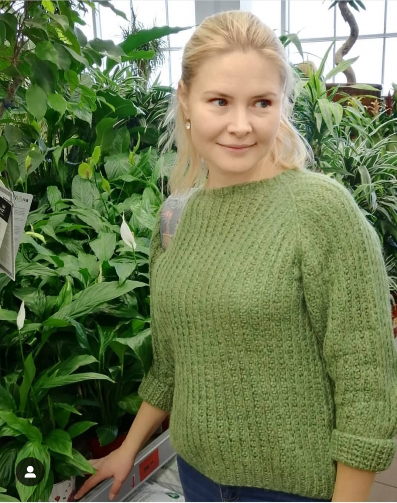 На свитер 44-46 ушло 4,5 мотка. Спицы 4,5 резинка, 5,5 - полупатентный узор