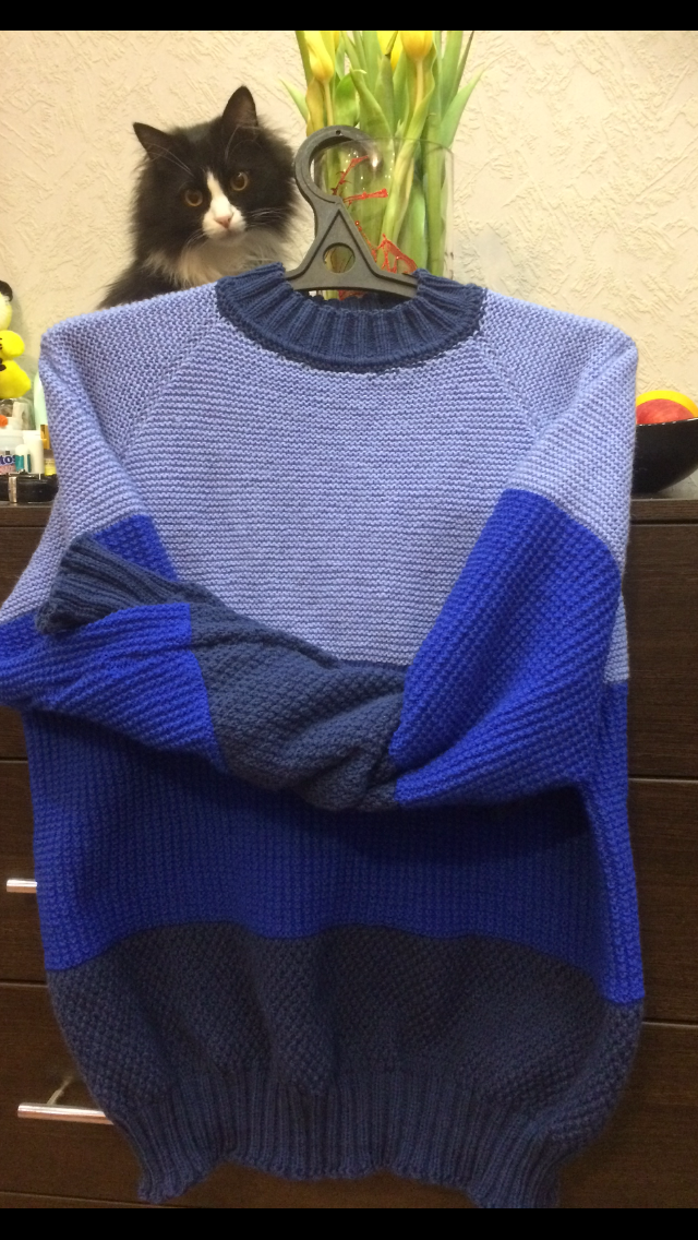 Связала для мужа. Ализе ланаголд 800 в 2 нити. Без кота никуда