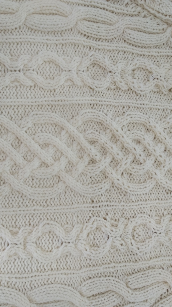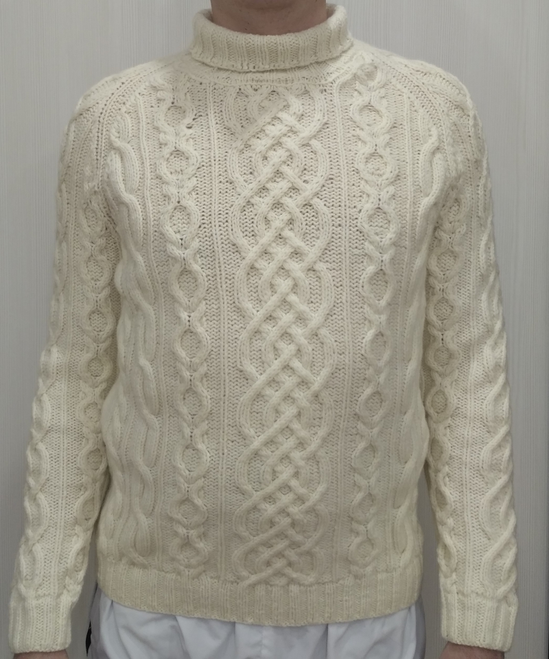 Пряжа Filatura Power, art. Alambra, цвет- ментол, состав: меринос-80%, ПА-20%, метраж- 500м/100гр Изначально пряжа предполагалась под другой проект, но на мой взгляд,очень неплохо подошла для детского пледа. Мягкая, шелковистая, одинаковая по ощущения до и после стирки. Размер пледа 72*90 см, в 2 нити, спицы 3,5, расход 300 гр. 2. Свитер для мужа. Давно хотела связать мужской свитер с такими аранами, а муж редко отказывается от предложения связать ему. Пряжа Knoll, ssoft, шерсть-100%, метраж-575м/100гр, в три нити, спицы 3,5, размер 50, общий расход 660 гр. До стирки нитки сухие, после значительно мягче и светлее (на третьем фото видно разницу до и после).