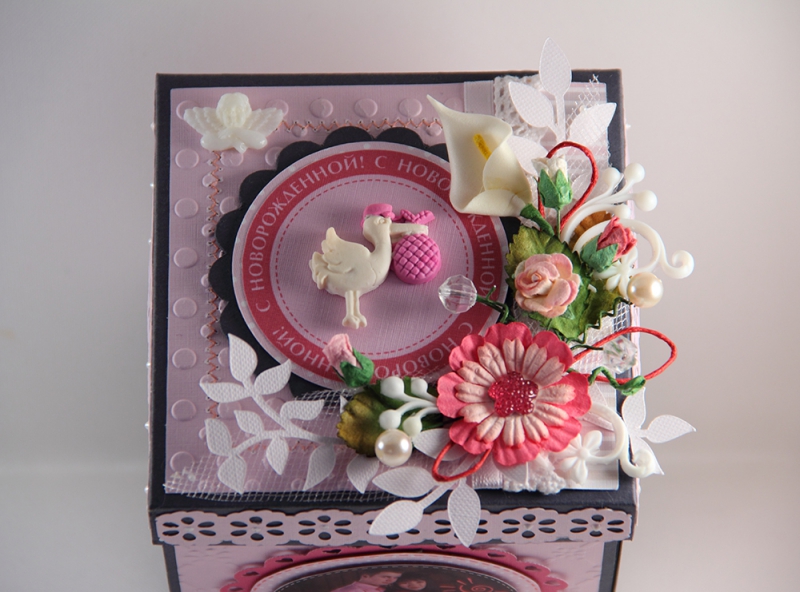 Мой первый музыкальный Magic Box для новорожденной. Когда почти все склеила - осенило, почему бы не сделать его музыкальным. С горе пополам нашла музыкальную открытку. К коробочке еще торт из подгузников сделала.