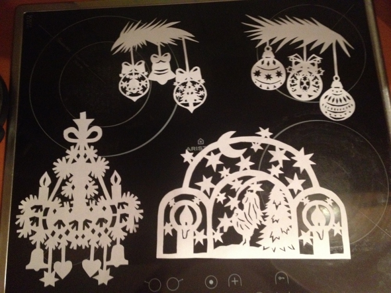 Почему тишина, ни кто ни делает поделки и игрушки к Новому году? Покажу свои мастерилки. В этом году увлеклась вырезкой картинок из белой бумаги, на окнах очень красиво смотрится, особенно в темное время суток. И балеринок в инете увидела, тоже интересно получилось, подвесили к люстре - они кружатся не переставая.