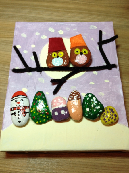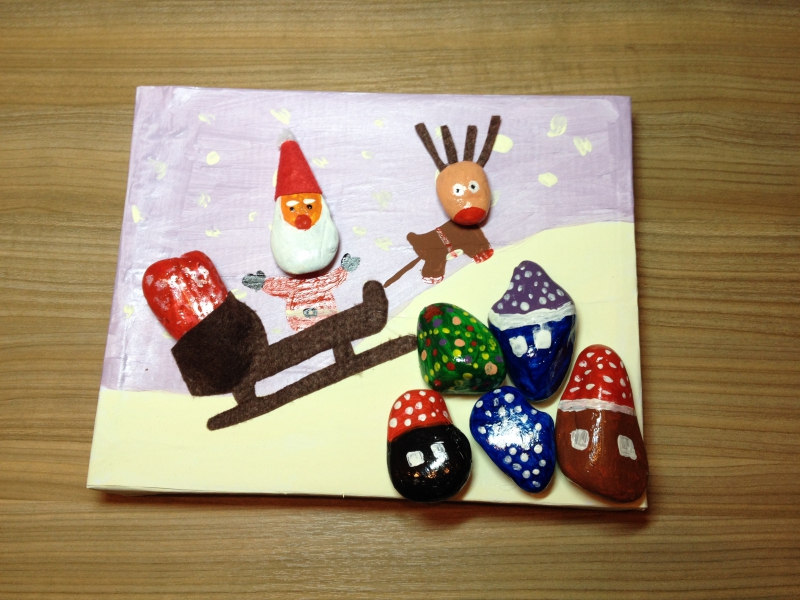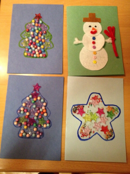 А мы оформили и подписали открыточки для бабушек-дедушек и сделали две новогодние картины:
