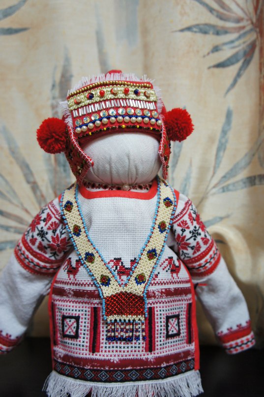 Все глаза сломала, пока вышивала по чёрному. По белому легче. Деталей очень много. Даже не верится, что сделала. Я представляю как этот костюм делали на взрослого человека. Здесь всего 30 см...Решила сюда, т.к. кукла -основа - сделана по русским традициям - ничего нового не привнесла. Даже размер куклы традиционный. И плюс костюм традиционный.... ![]()