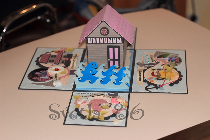 Домик размером 8 см на 12 см. Делала по этому замечательному МК http://kseniabakulina.ru/post331315433/