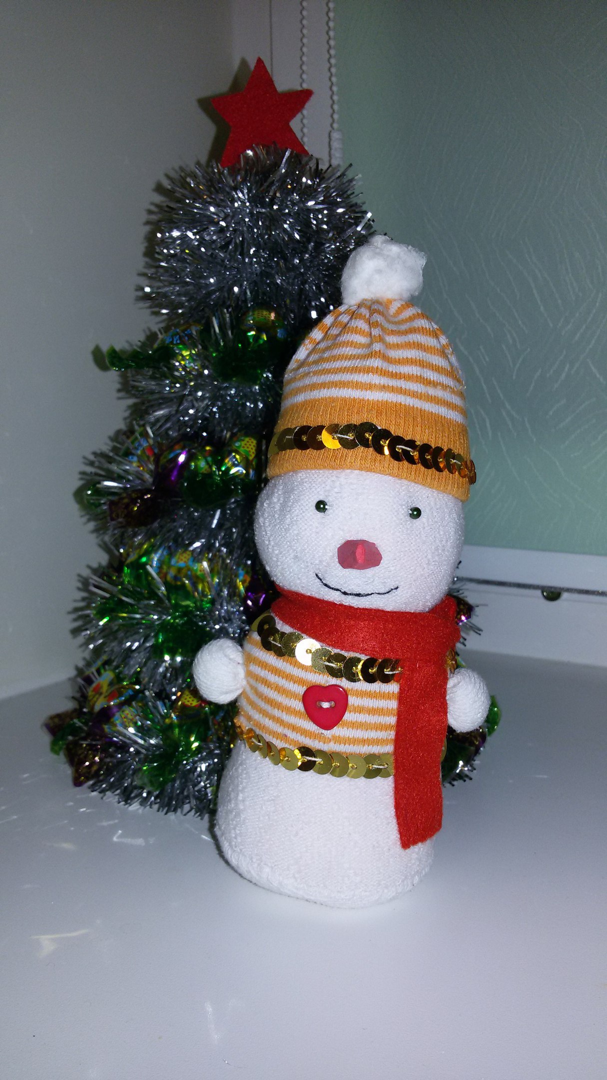 Носочки,лучше гольфики ,или, мужские носки. Крупа. 10 см ниток. Видео по изготовлению снеговиков брали на [hide]Ютюбе[/hide