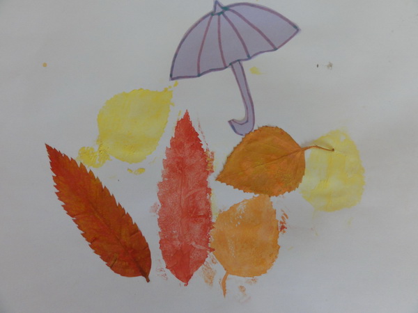 Гуашевые отпечатки осенних листьев и апликации этих самых листьев. Несложно и красиво зонтик тоже апликация. Мой ляль почти полностью сам справился. На большее мы пока не способны)))