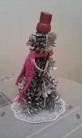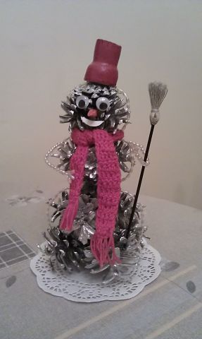 Природный материал, т.е.шишки выручили и тогда, когда в сад нужно было сделать снеговика