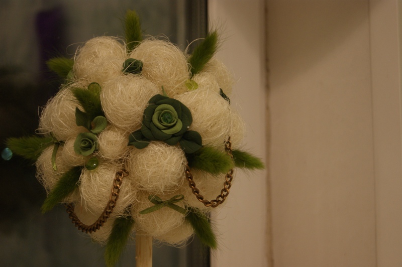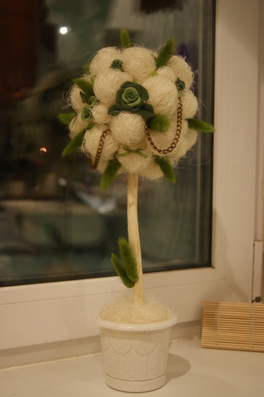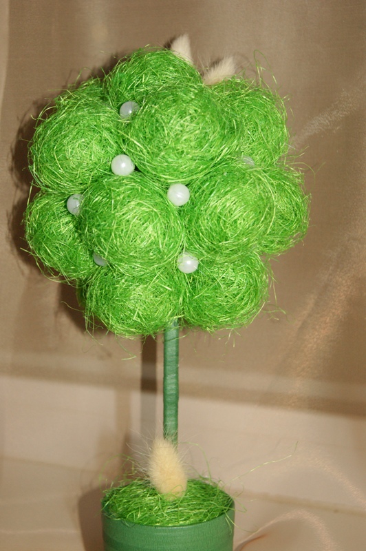 И мини топиарчик. Шарики из сизали, бусины, сухоцветы лагурус.