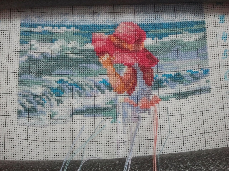 А эту я в отпуске вышивала, когда дети спали. Правда июль-август была такая жарища, что они и не спали толком, так что возле них сидела, а не с вышивкой.