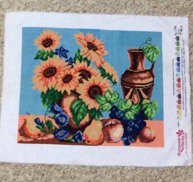 Ниточки висят потому, что вышиваю парковкой. Рассказывать долго и не смогу подробно объяснить, Вы посмотрите про этот метод в интернете много информации, если интересно ![]()
