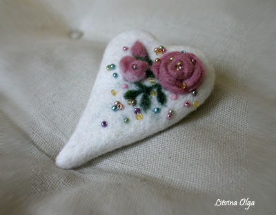Вот выкладываю, то что есть: Мокрым способом, потом всухую набит рисунок. Вложение: Сначала всухую набит рисунок, потом все валяется в мокрую (не очень аккуратно, но это первые и я не очень старалась )Вложение: А вот брошки сделаны на прошлой неделе: Хризантема для мамы. Мокрым. Отняла кучу сил, но в результате я кажется поняла в какой момент нужно разрезать на лепестки ![]() Состоит из 3х блинчиков порезанных на лепестки. Вложение: Вот в такой коробочке буду дарить: Коробка из под конфет обклеена фетром. Вложение: Просто брошка. Тренировалась в достижении идеально ровной поверхности сухим способом. Не знала, что бы такое придумать и получилось почему то сердечко (на носу день Святого Валентина ) Вроде бы получилось, но долго мучала листок (несколько раз отколупывала) и все-таки попортила свою поверхность Хотела сама носить, но дочь бессовестно прихватизировала и не отдает. Розочки сделаны из обрезков хризантемы. Вложение: |