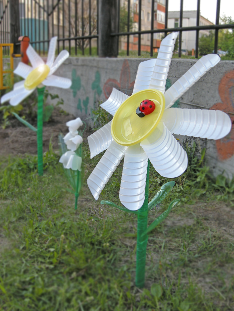 В саду конкурс объявлен на оформление площадка группы при помощи пластиковых бутылок. Вот, взялась я за дело и смастерила вот что: