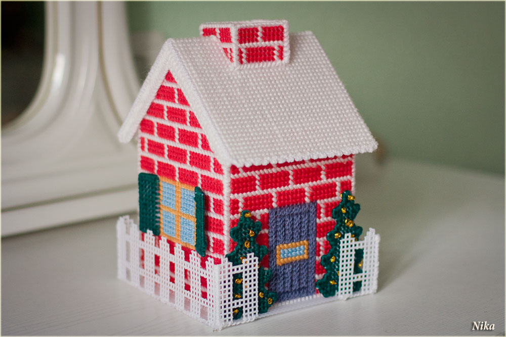 3D вышивка..домик для салфеток