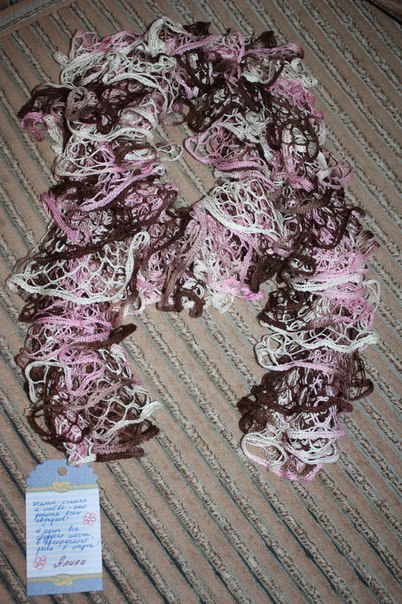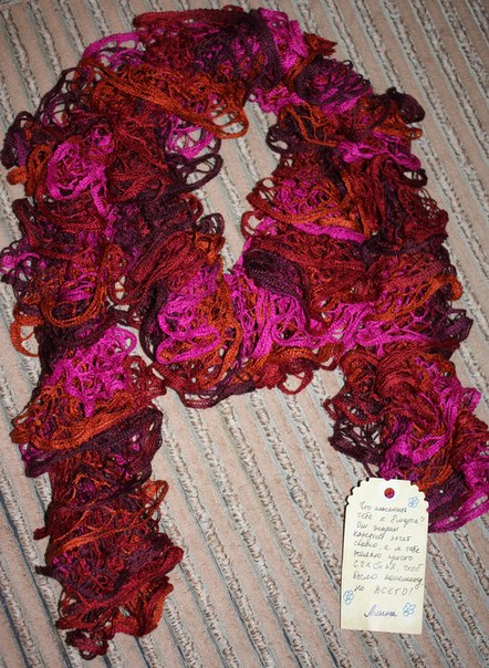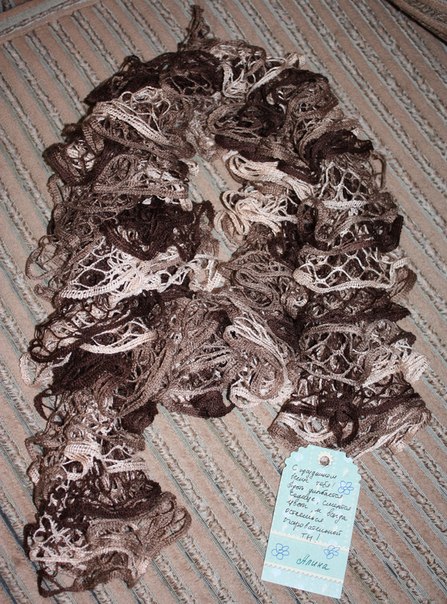 А шарфики тоже крючком? А то весь инет перерыла,а там они спицами вяжут. И ещё вопрос: на Ваш шарфик сколько ушло пряжи? Шарфики просто чудо ![]() |