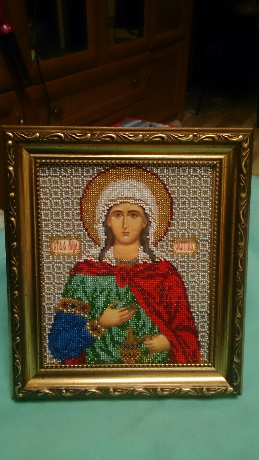 Икона из ювелирного/микробисера. Т.к. нет отдельной рубрики по бисеру, решила "впихнуть" сюда.