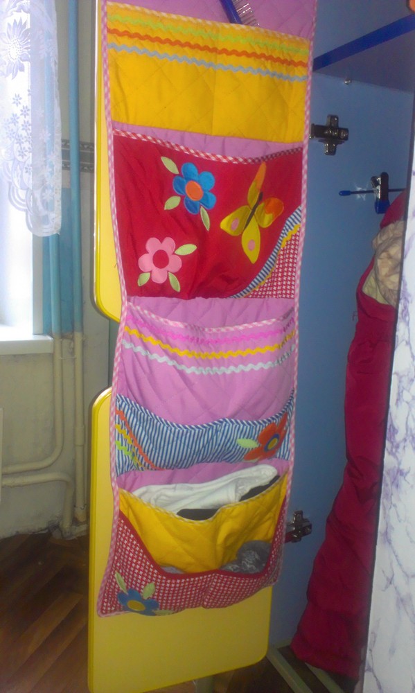 Вот девочки похвастаюсь, сшила доче кармашки на шкафчик в садик.
