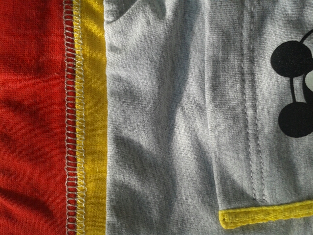 Покажу как я выкрутилась :) в свое время решила купить оверлок и отдельно распошивалку, а могла бы и коверлок один купить, который такие швы выполняет. С рождением второго сына поняла, что мне шва этого для украшательства не хватает. Да сразу скажу, что шов с распошивалки на изнанке не так смотрится, как шов, выполненный на коверлоке, может я и придираюсь :) Короче, я прошила на распошивалке тройной строчкой, а потом вручную петляла между ними иголочкой с ниточкой - вот результат. Без распошивалки можно на простой машинке три параллельные строчки выполнить на одинаковом расстоянии, например ширина лапки.
