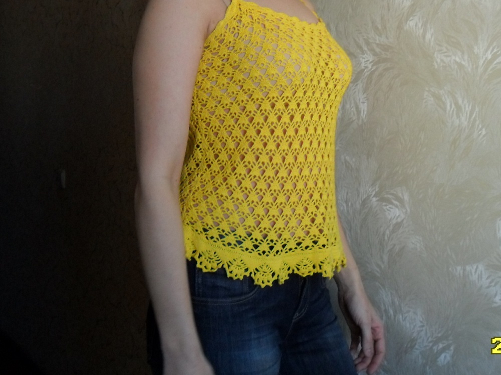 Вот ещё хвастанусь, любимой маечкой, так усердно вязала, что крючок сломала)))
