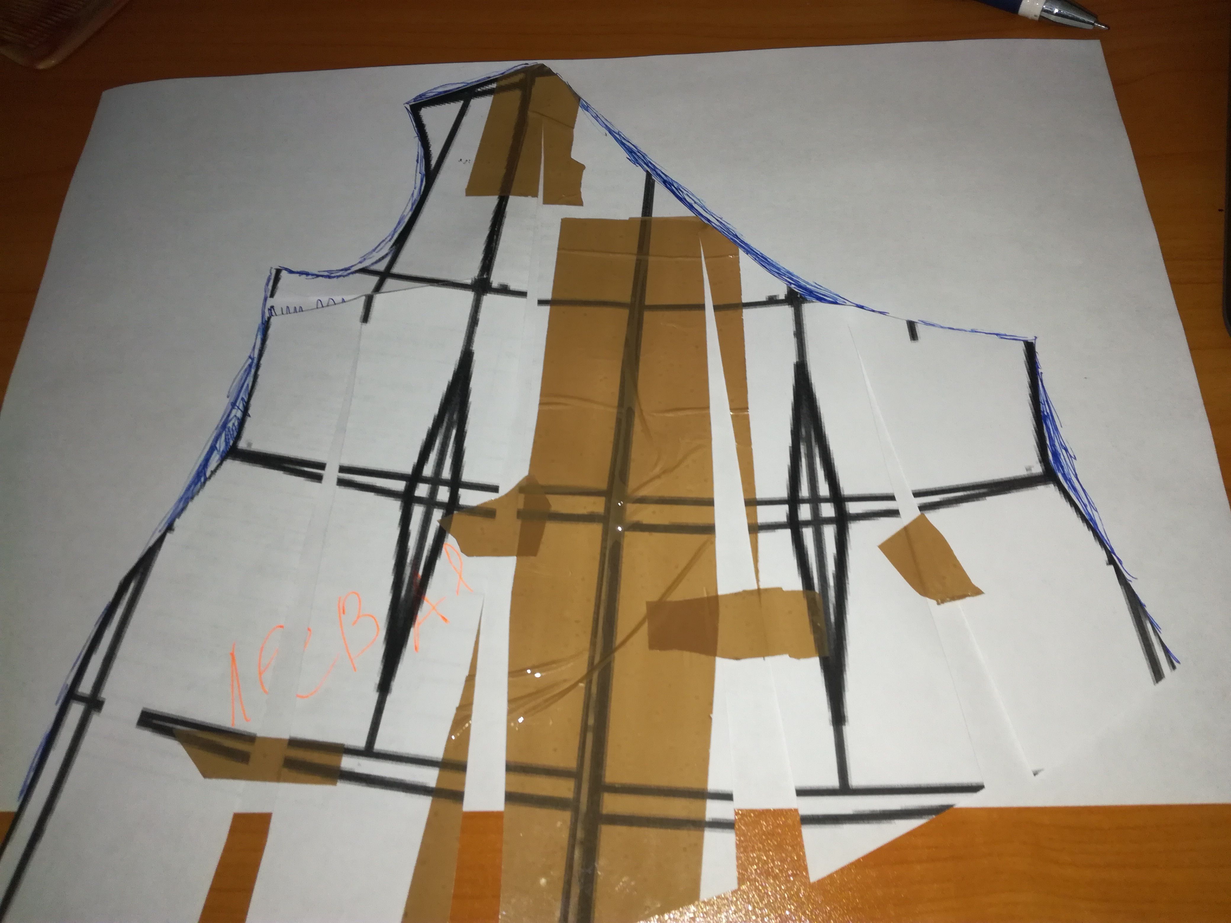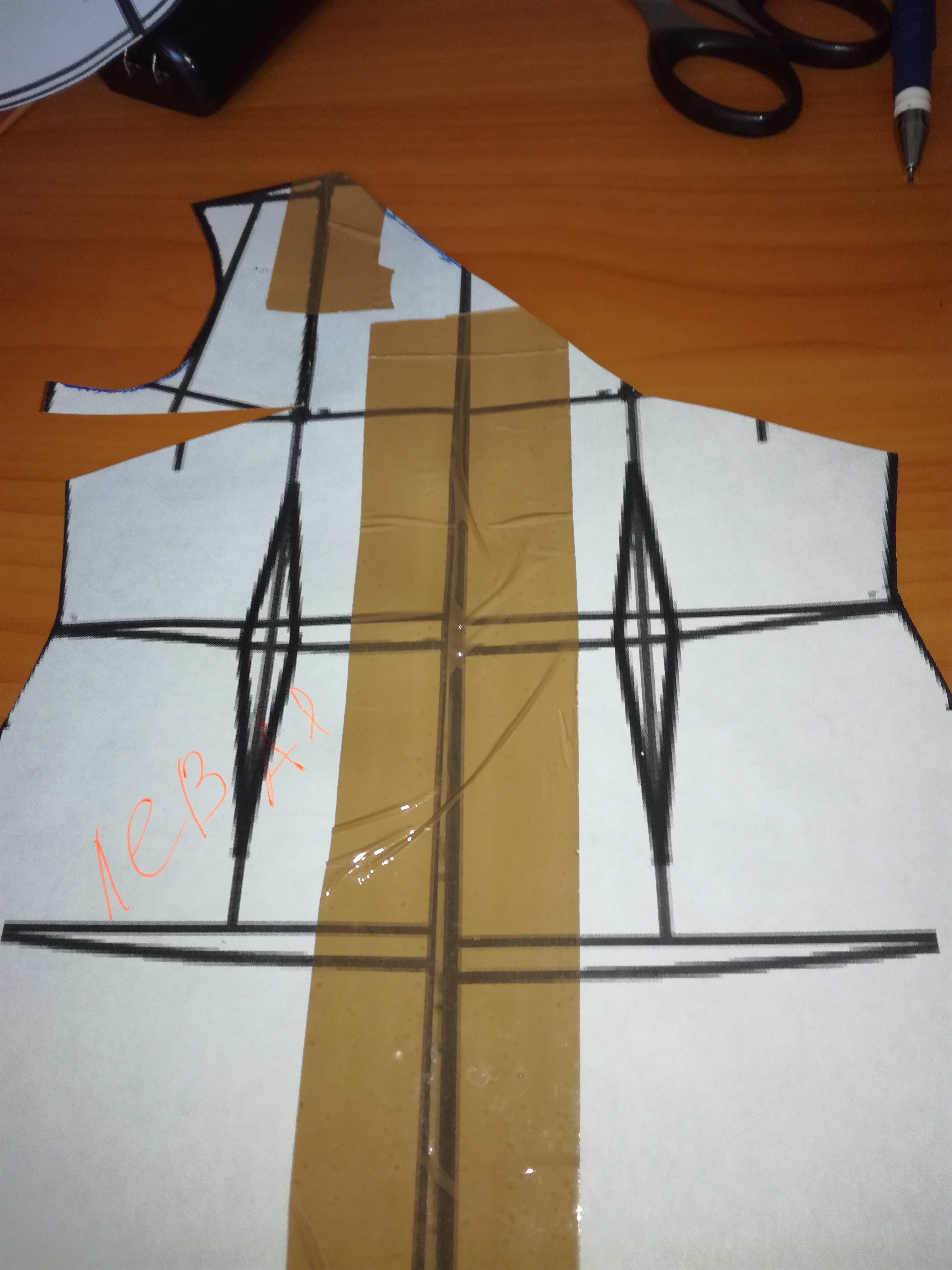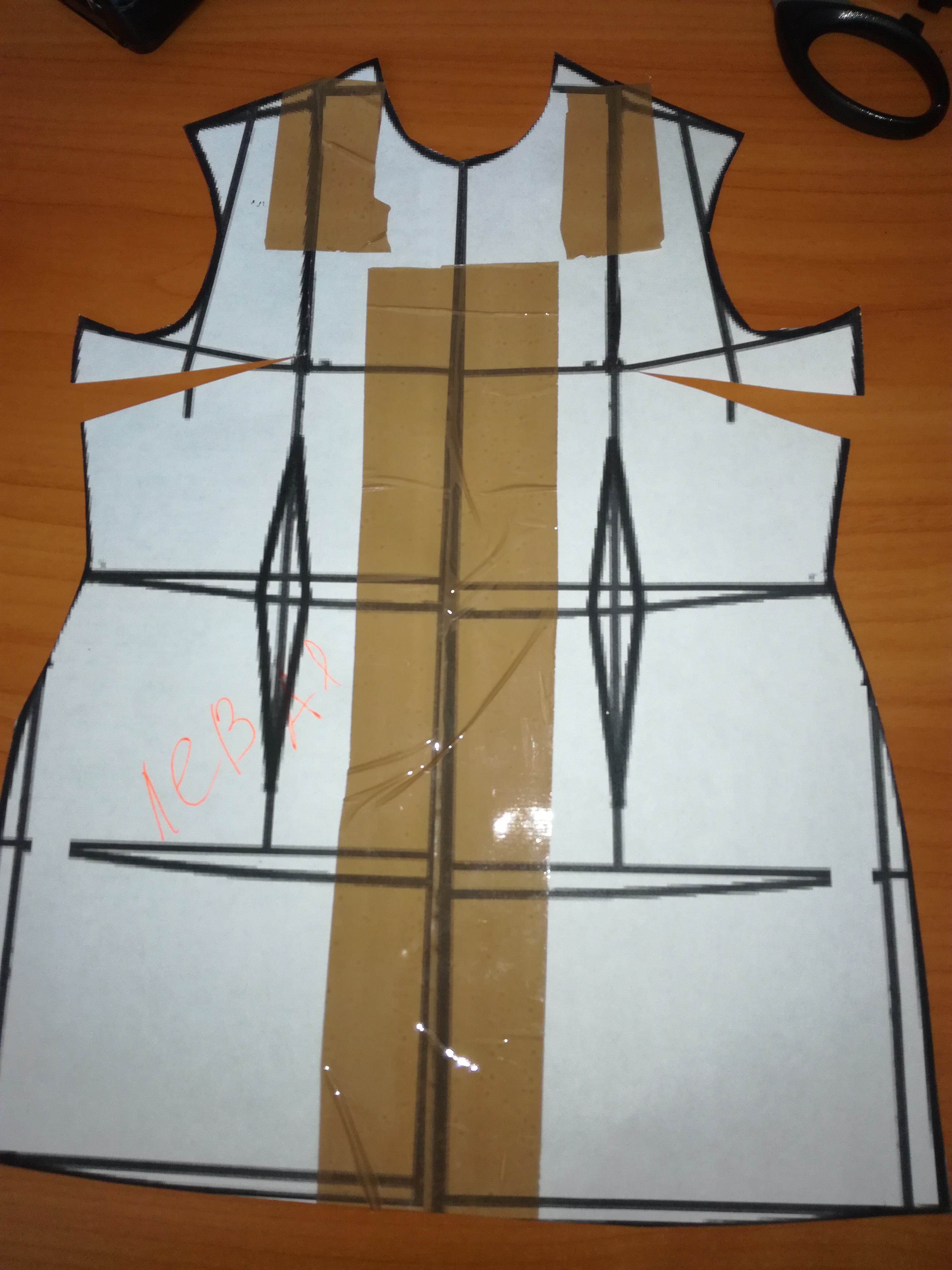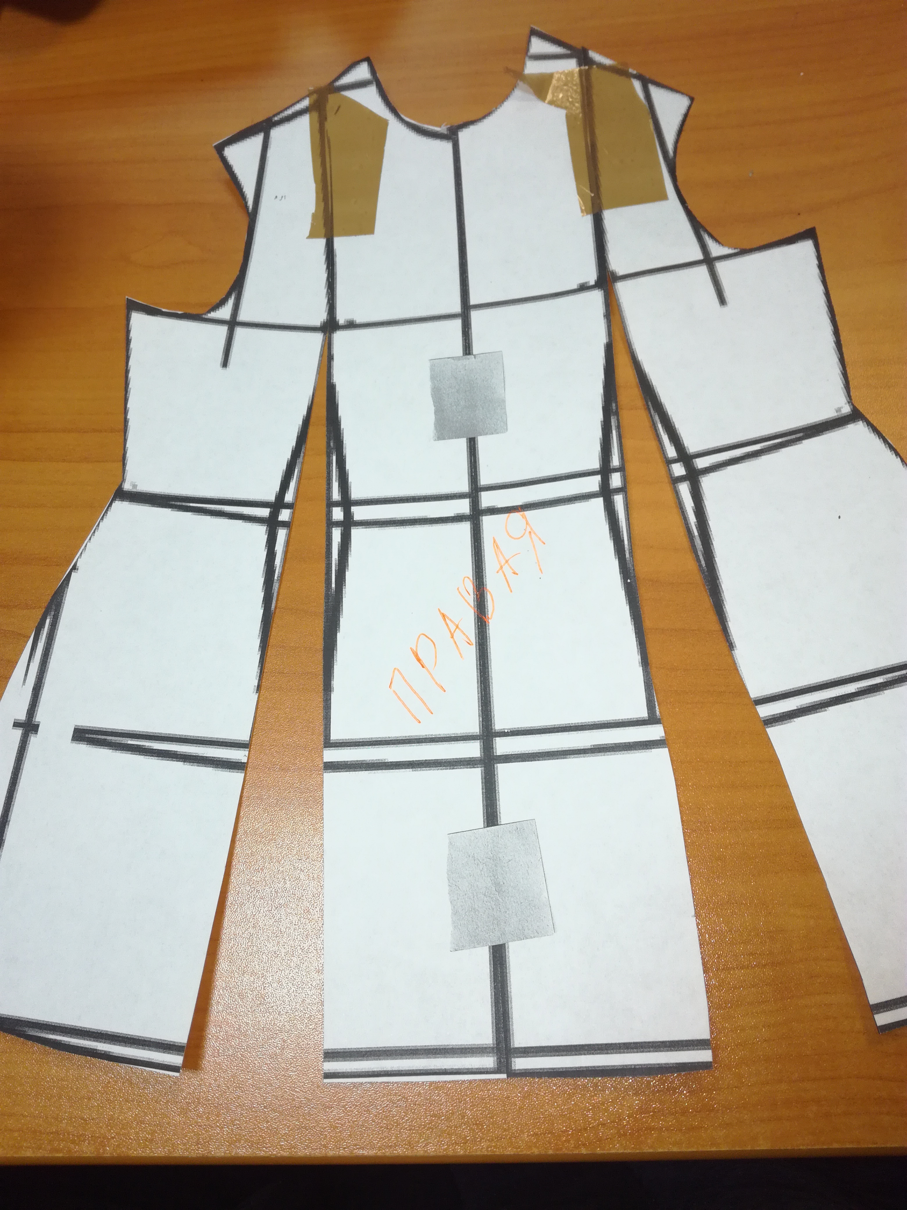 1. Снимаем базовую выкройку не половинку, а целую из двух частей.