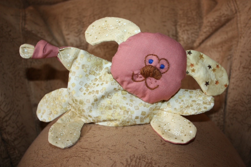 собачка-мякиш внутри с вишневыми косточками, ушки и лапки шуршат