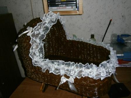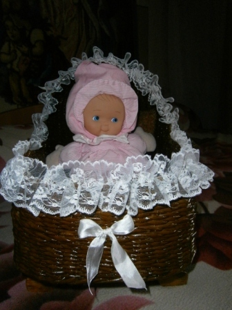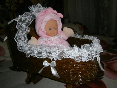 Вот Люлька-кроватка какая получилось, осталось сшить матрац, подушку и одеялко и спальное место для куклы готово