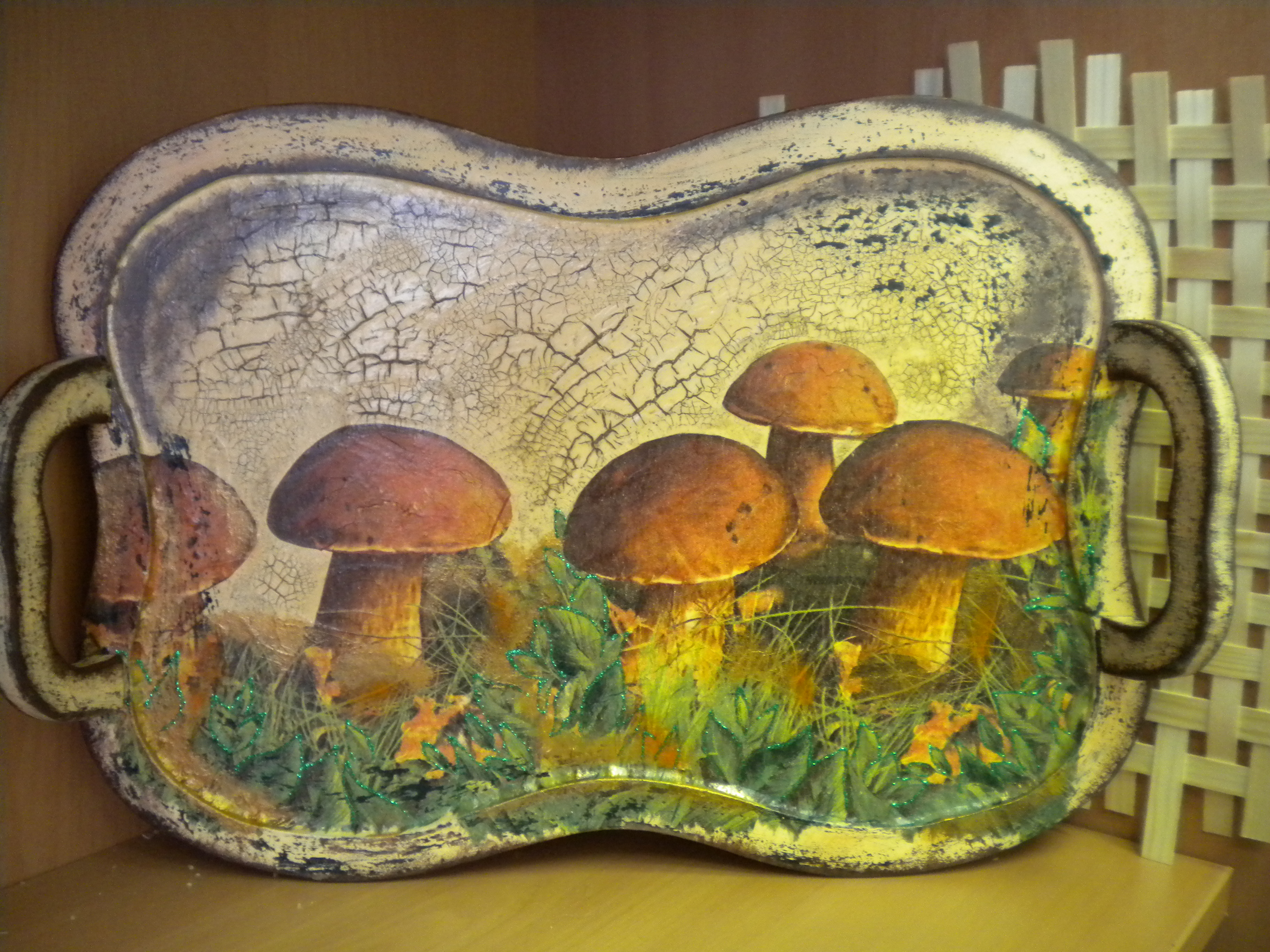 деревянный поднос, салфетка, кракелюр