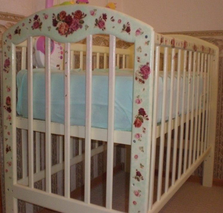 Подносы и доска просто шедевр!!! А я оформила детскую кроватку в технике декупаж и стул. Делала впервые. Кракелюр хотела использовать, но потом передумала и просто сделала примочки губкой зеленым и розовым. Вложение: Вложение: Вложение: Вложение: |