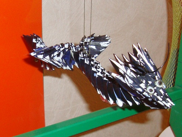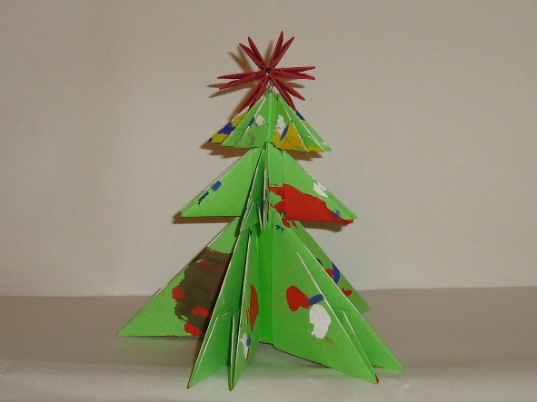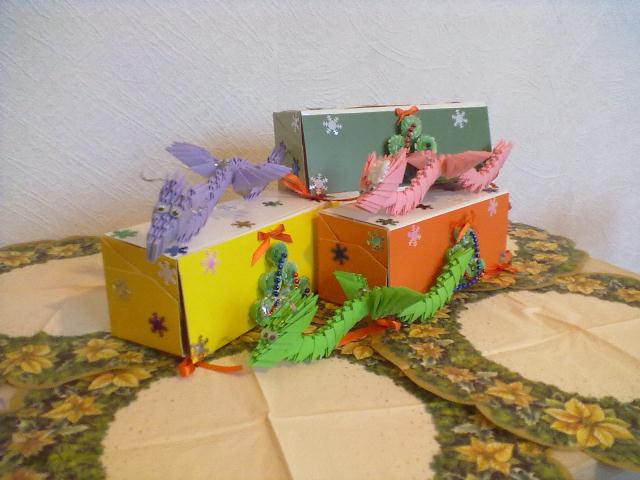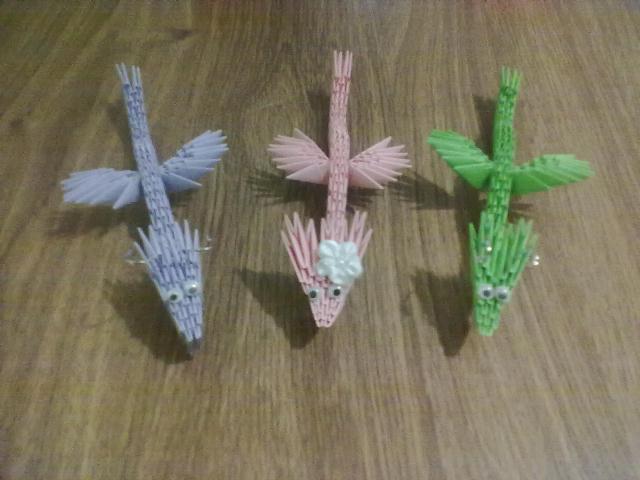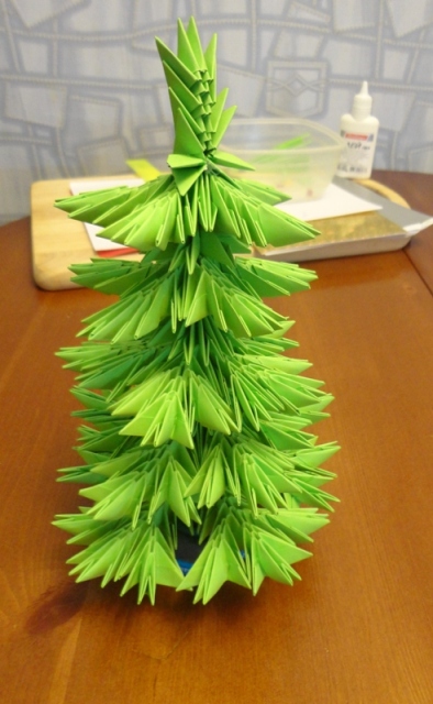 Правда все делаю для игр с сыном. Вот елочку подобную делала из модульного оригами, но попроще, чтобы сыну удобнее ее украсить. И еще дракончика (тоже сын раскрашивал)