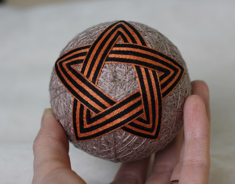 Ну не знаю, как получилось - так получилось, я старалась, конечно, но проблема была в том, что у меня не было схемы. Вышивала наугад, методом тыка, что называется. Поэтому когда вышила половину, поняла, что у меня не хватит места, чтоб закончить вышивку, пришлось распустить и начать сначала, но меньше слоев делать. Получилось вот что... Вложение: Ну никак не получалось красиво сфотать, фотограф из меня - хреновый.. Пыталась сфотографировать как открытку, на фоне книги.. только сильно не критикуйте.. ![]() Вложение: А с другой стороны шара - вышила что-то типа цветка.. Ну вроде как, в память о воинах.. Вложение: На фото видно линии разметки, но на самом деле они почти не отличаются от фона. Зато зеленые лепестки у цветка немножко объемные.. ![]() Ну как? ![]()