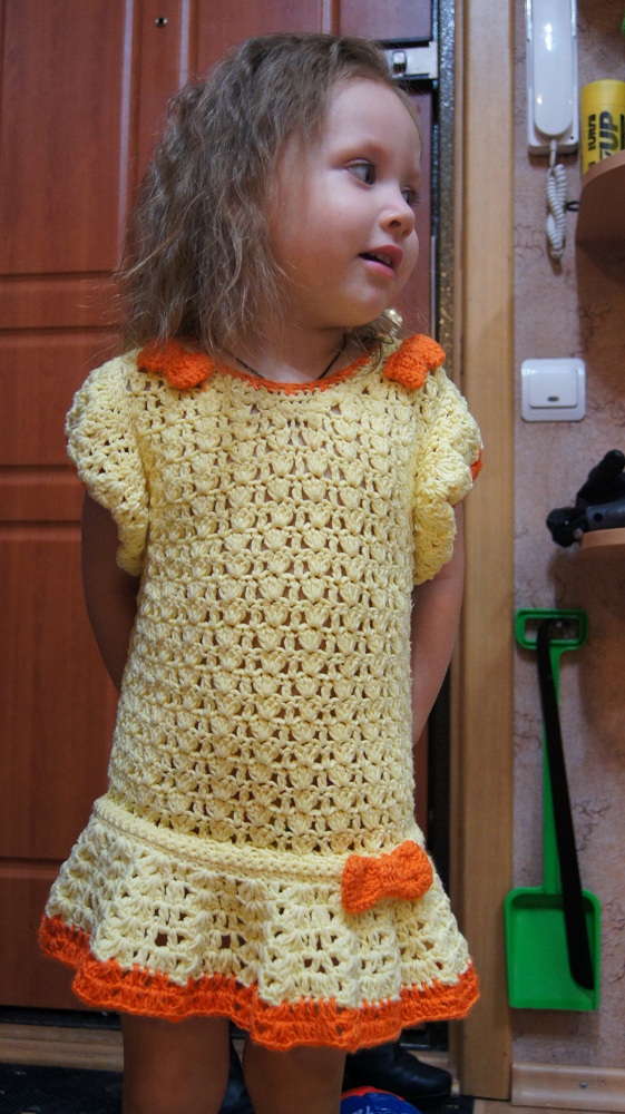 Вот первое платье для доченьки, до этого только шапки, панамки, пинетки, жилетки, погремушки.