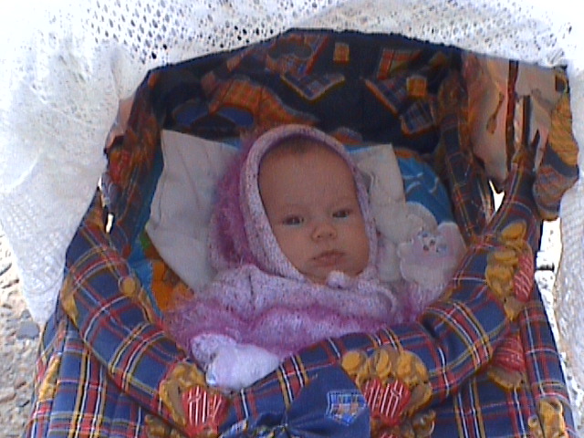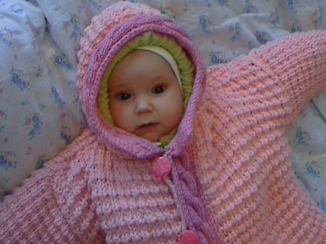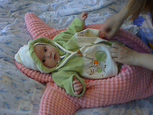 Кроме этих вещичек был костюм - комбез на лямочках и кофточка с застежкой на 3 пуговки сзади на 6 мес. - у кого кофточка -уже и не припомню вязала из шерсти и мохера - поэтому вещичка теплая и носка (учитывая что детки быстро растут). И свитерок с застежкой на плече -2-3 года - также ушел дальше по рукам.