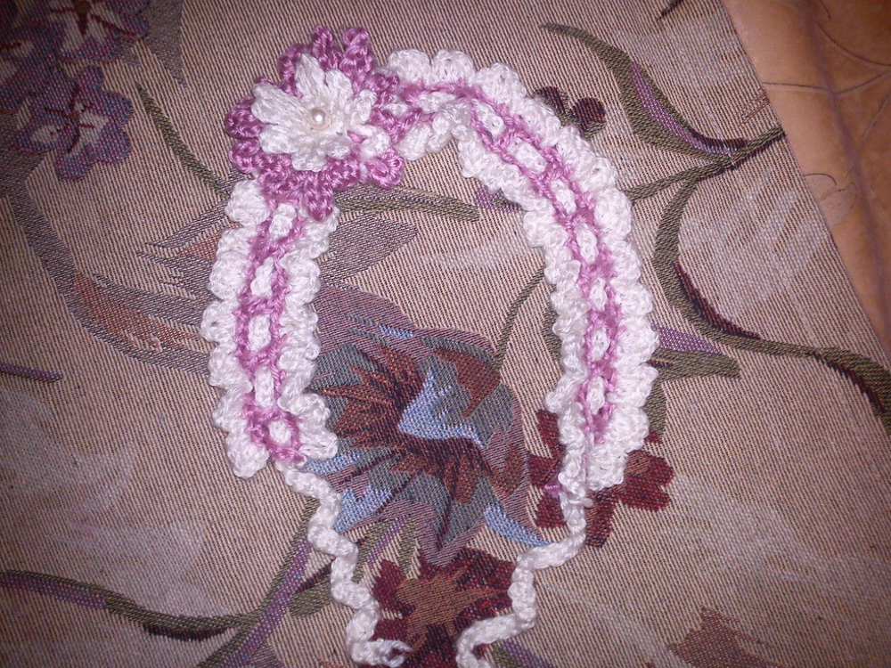 у меня вот такой набор получился, в подарок вязала. пинетки и повязка.