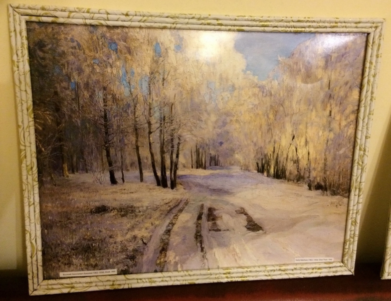 Не знала в какую тему податься. Эта мне показалась наиболее подходящей. Мое временное пристанище решила украсить репродукциями русских художников, вырезанных из настенного календаря. Поскольку без рамки они не смотрелись - было решено сделать рамки своими руками из того, что было под рукой: израильские газеты, картон, белая подарочная бумага, ПВА, двусторонний скотч, коричневая гуашь. Творческих успехов!