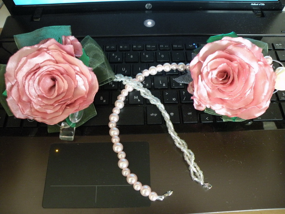 Розы из атласа. Аксессуары для украшения дамской сумочки.