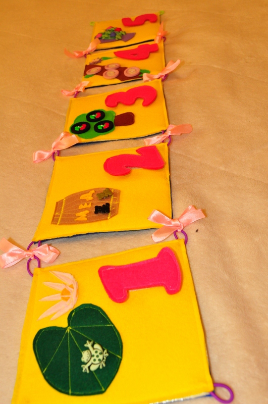 Цифры на липучках. НЕмного расскажу как я "заболела" фетром. Как обычно, летая по просторам интернета наткнулась на сейт о игрушках из фетра. Фантазии конечно у меня такой большой нет, вот и взяла уже готовые идеи. Купила через контакт фетр в Питере и началось мое творчество по ночам))) Я и шить то не умела, только в новый год мне муж подарил машинку, взяла только пару уроков у мамы. Делается все просто-по выкройки вырезается фетр и пришивается на основу однотонную из фетра с липучкой. В итоге получается такая красота.
