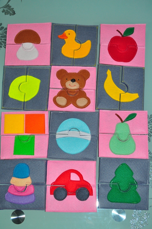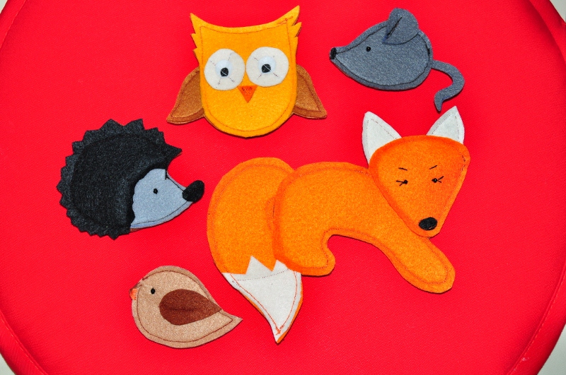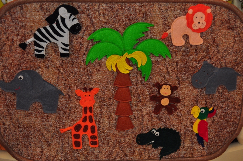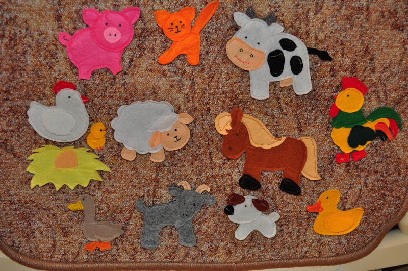 Все игрушки выполнены из плотного фетра 2 мм. Шьется просто-по выкройки вырезаются детали игрушек и пришивается на основу по образу игрушки с пришивной липучкой на обратной стороне. Моему ребенку очень нравится. так мы выуили всех животных кто как разговаривает.
