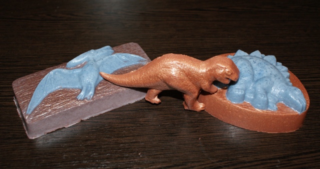 Вот мои динозавры, который стоит сильно высох за сутки и залить его не получилось. Дочь была счастлива и сразу разломала его.