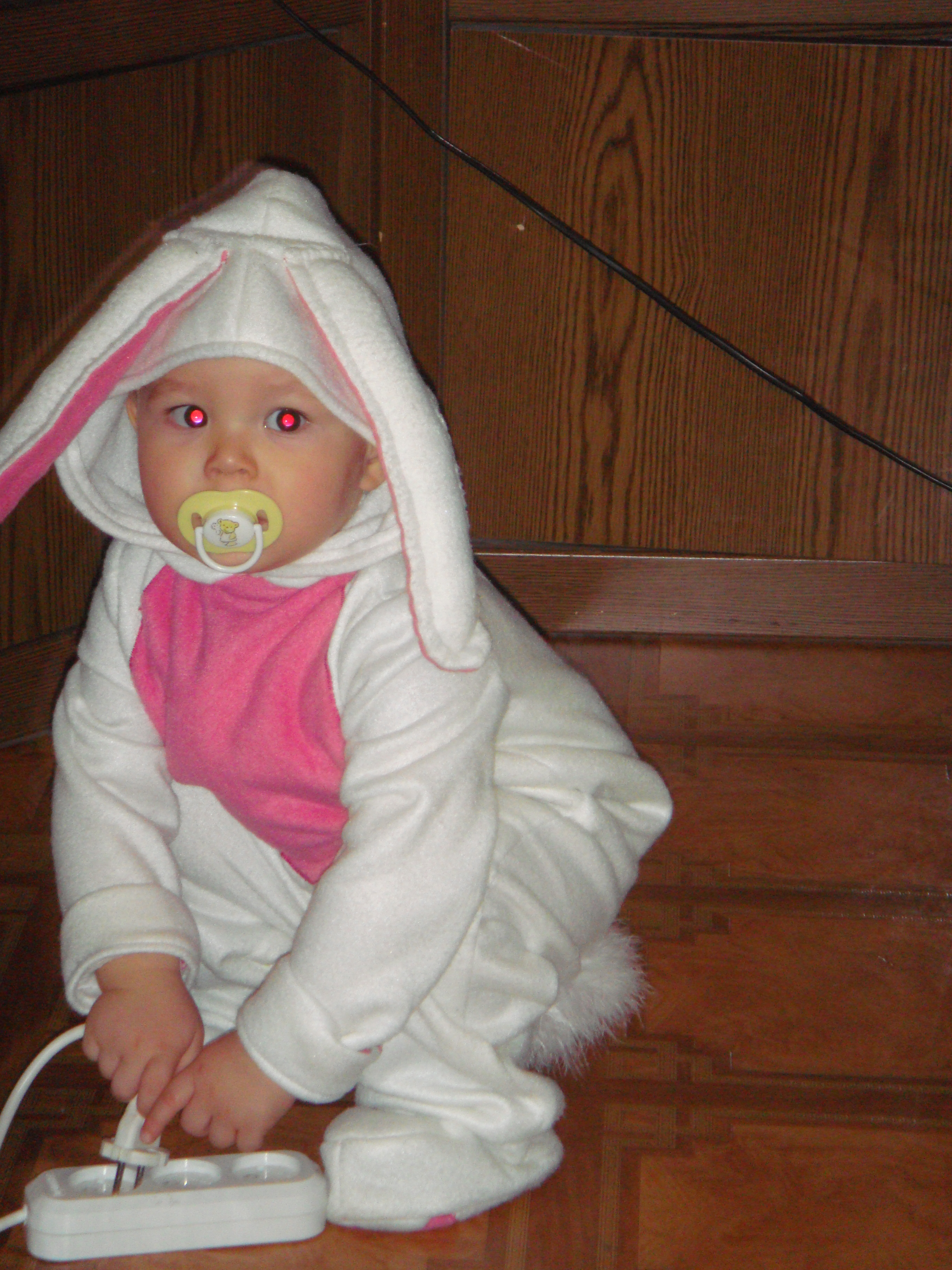 а, вот такой у нас зайка получился.только вот ушки тоже не стоят, только, что мы с ними не делали, чтобы они стояли.