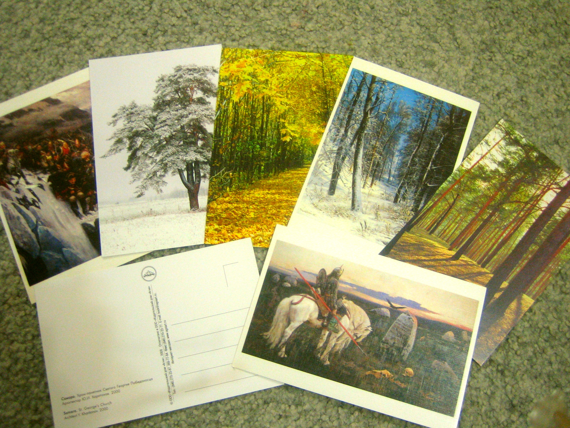 Сфоткала не все Заказывала открытки и не учла их формат, но зато на них можно наклеивать большие красивые марки (жалко, что их пока нет). В заказе в основном пейзажи, горы, но еще есть открытки художников.