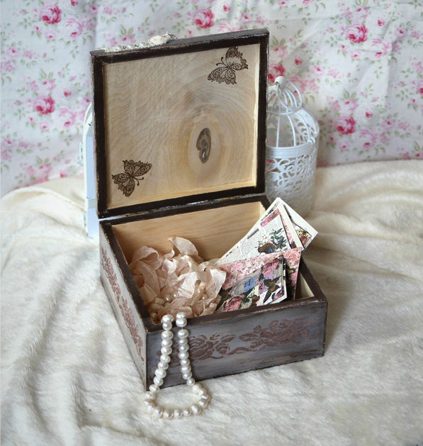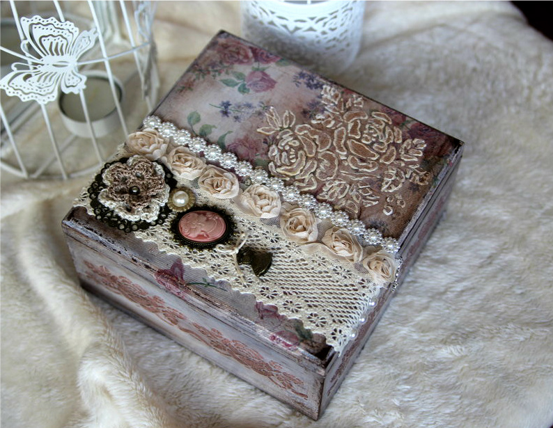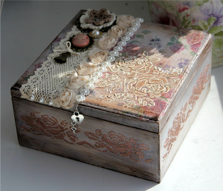 Но зато успела сделать кое что новенькое ![]() В этот раз я немножко усложнила себе задачу))) Помимо техники состаривания, я использовала текстурную пасту и контуры, ну а чтобы веселее было украсила сверху декоративными элементами. И получилась вот такая винтажная шкатулочка для любимых вещей и просто воспоминаний ![]() Внутри оставила необработанное дерево, т. к запах мне дерева больше нравится, чем лака ![]()