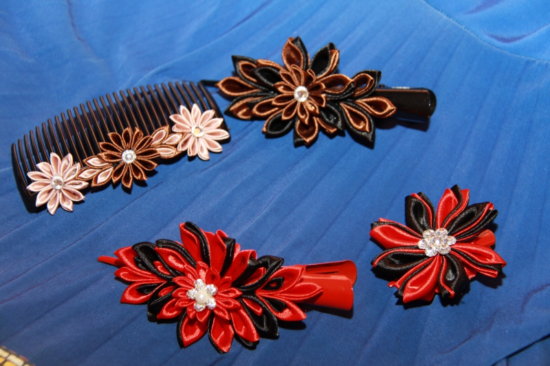 мои канзашки,первые работы,но и соответственно -последние,покупала обычные простые заколки за 15 руб