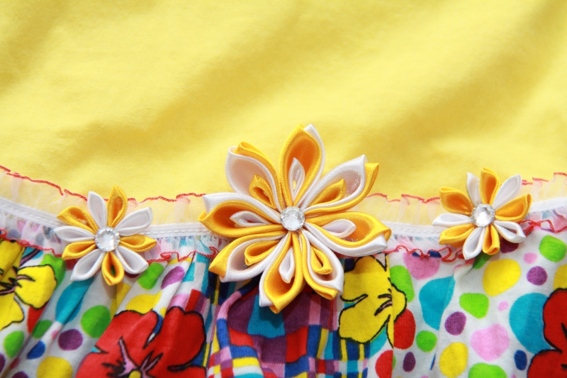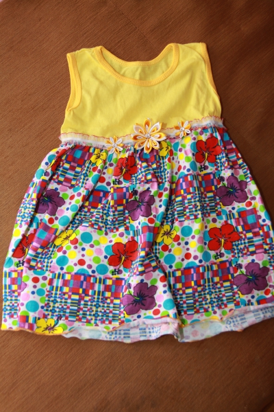 Девочки встречайте платье для маленькой принцессы ,я нашила тесьму белую и на нее цветочки,к платью идет повязка.