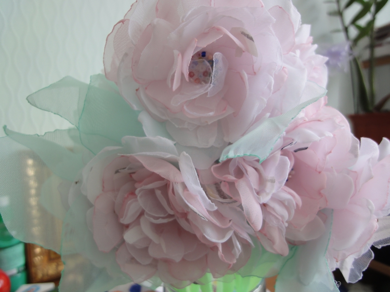 и на них делала круг и потом на него уже цветок. девочки на солнце это все дело переливается и сверкает ,за счет атласных лент ![]()