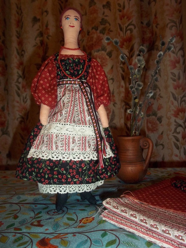Это просто кукла. Моя первая. Без образцов - сама придумала одёжку... А вторая - это ж реконструкция образца! И это городская кукла была, из дорогих тканей! Считай точно купчиха! ![]()