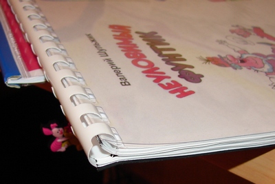 7ЦВЕТик писал(а): ug я на годик готовила альбом дочке. Это не так сложно сделать в любой программе. Особенно, если ничего особо не выдумывать и делать на белом фоне. Мне лень было искать рамочки/оформлялки, поэтому просто сфотографировала все игрушки дочки и всякие детские штучки, которые дома были, в том числе коляски, ванночки, стульчики и прочее. Тоже память ![]() Потом распечатала в обычном фотоателье готовые страницы на фотобумаге (принесла на флэшке в формате .jpg. Наверняка, сейчас можно и .tiff... ) Для примера пару страничек из альбома... Скрытый текст Единственное- руки так и не дошли сделать переплет. Хочу вот такой (брошюровка пружиной). Вложение: Вложение .jpg больше недоступно. В Сургуте не интересовала, но думаю где-то должны делать. В Екатеринбурге лет 10 назад делала за копейки. Самое главное - фотографии на фотографии похожи - нигде никаких пикселей не видно ![]() У меня на работе есть сшивка двух видов вторая мне не очень нравится, рвет бумагу легко,а вот как на первом фото очень даже, лучше и не придумаешь, книги ребенку давно уже не покупаю их девать уже итак некуда, сама печатаю, сшиваю, потом и выбросить не жалко