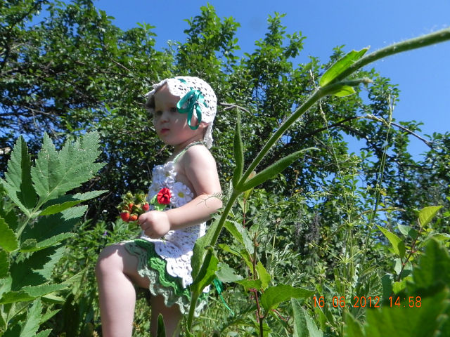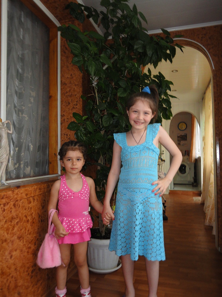 Еще есть такое платье. Его связала из тех же узоров, что и предыдущее платье. Носили в этом году на море.