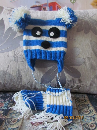 Очень красиво и аккуратно связано! Молодец! Выложи пожалуйста схему шапочки с ушками....