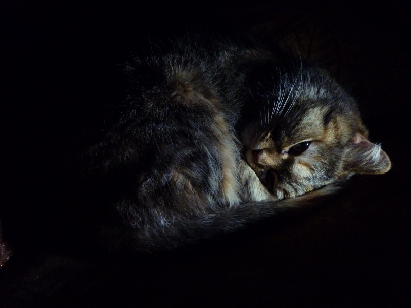А вот еще фотография из кошачей серии, которая мне нравится. Помню, снимала в полной темноте и фонариком на кошку светила