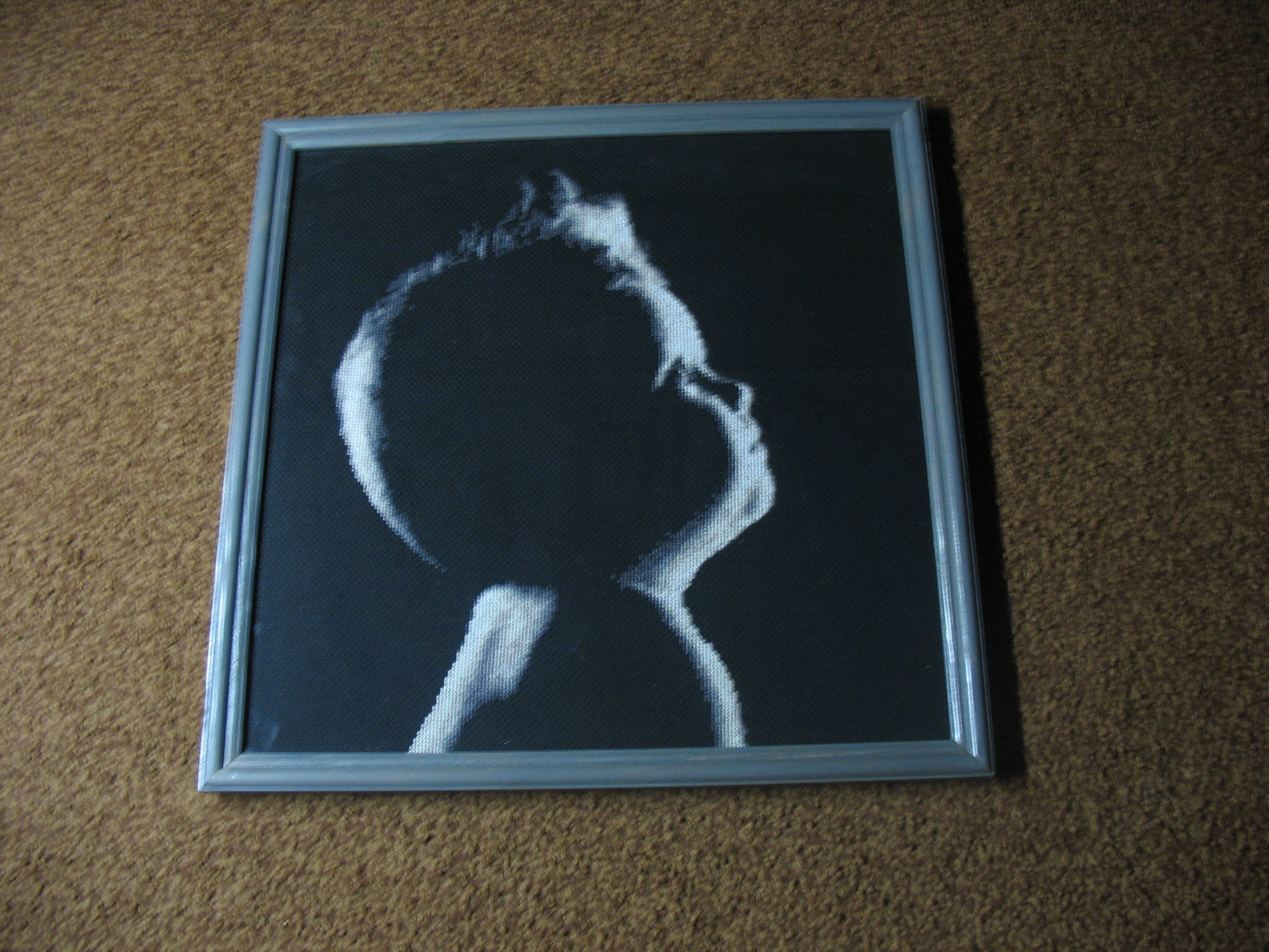 А я всё не могу закончить вышивку "Младенец на руке" (тоже на чёрной канве).